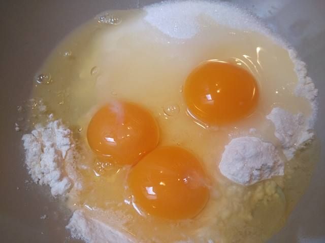 Terminez en ajoutant la farine progressivement, tout en remuant. Versez la préparation dans un plat prévu à cet effet.